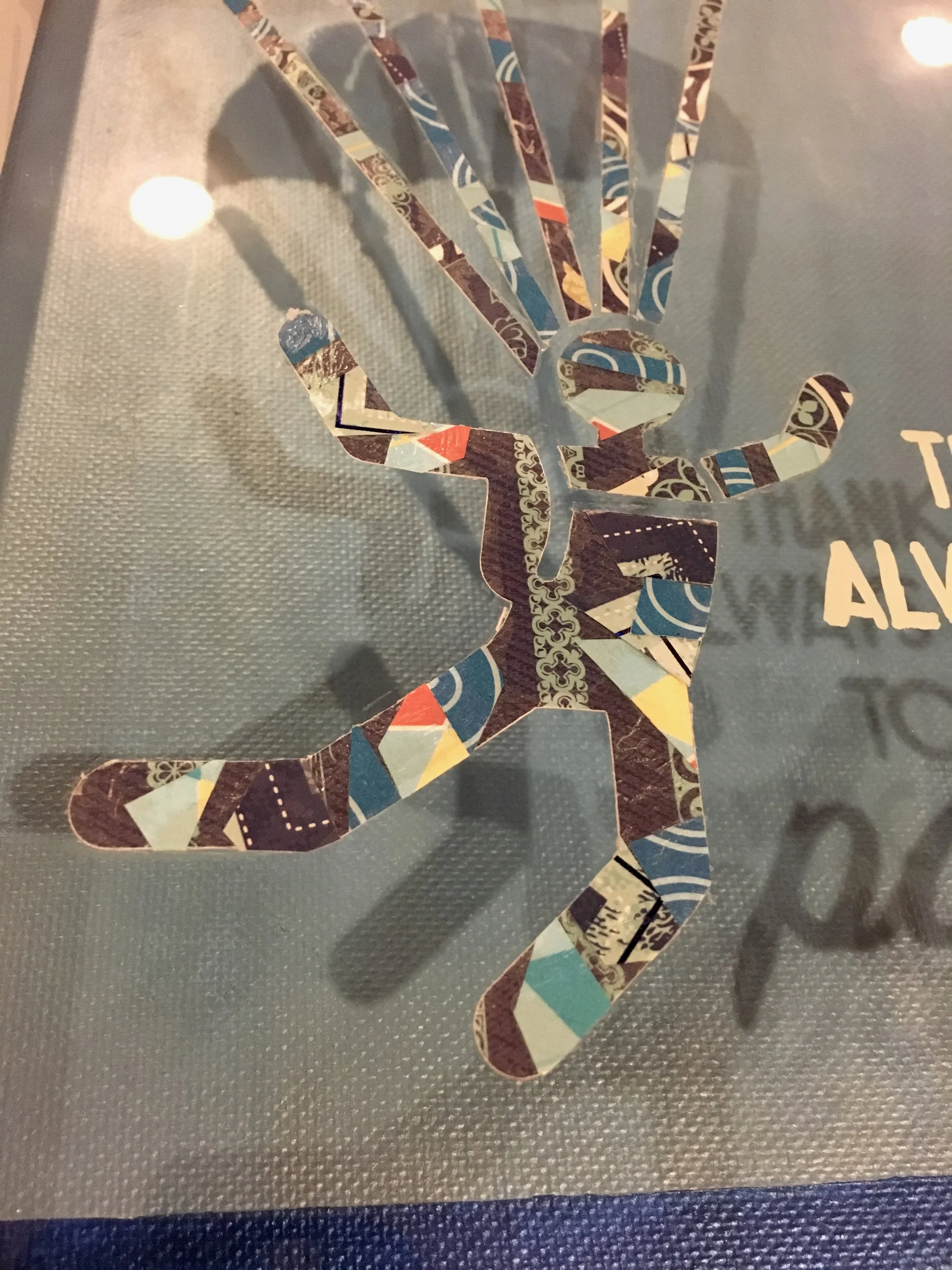 "Sometime ago, I heard a story of this military young man from the war who was assigned to this soldier who [flew] airplanes during WWII. His life was saved when he had to jump from his airplane during an air raid and his parachute saved him. So years later, he found this young man and personally thanked him for packing his parachute all those times and saving his life. I told my husband this story and told him that’s how I felt about him after 25 years of marriage, and I wanted to thank him for always packing my parachute. My husband is not a very emotional man and this brought tears to his eyes. I was so moved by that that I decided that one day I was going to do some sort of art and frame it as a gift to him."