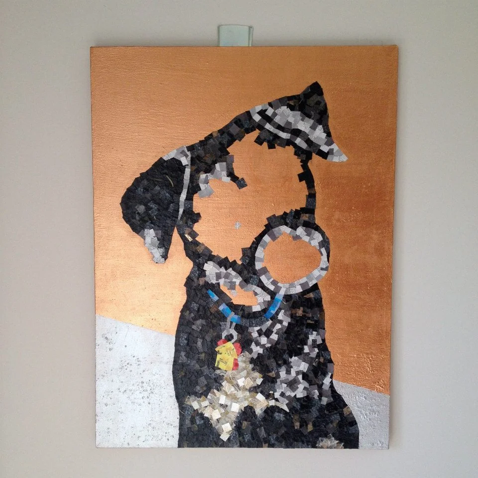 Since I kicked off the Pet Project, I've created one each quarter. Each time, the process and my preferences evolve. This portrait of Frank was the first time I used metallic acrylic in the background. It gives the work so much depth and personality; it's become standard.
