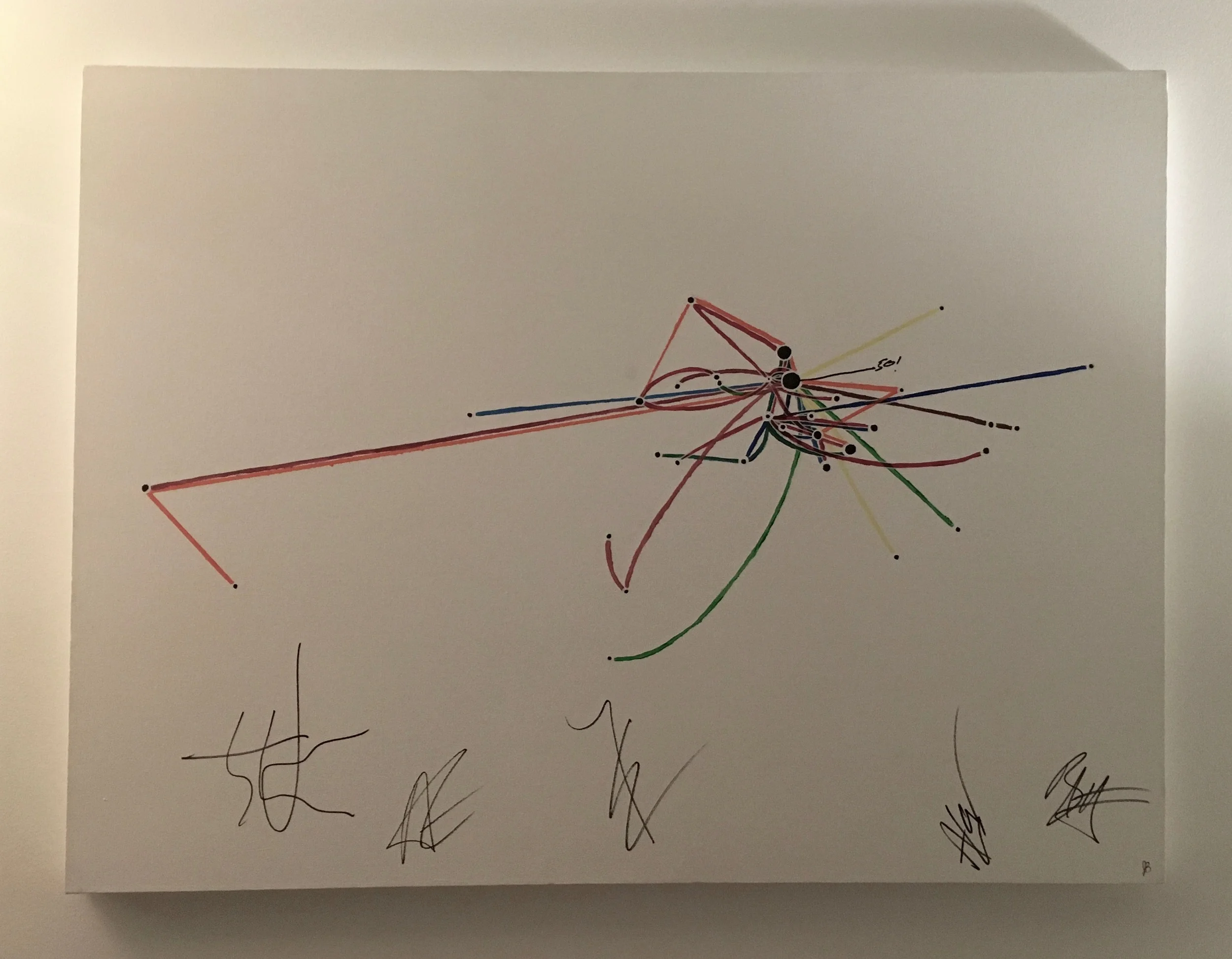 When Katie and Meg hit the road for their 50th show, they took to Twitter to let the band know that they were on their way... with a massive canvas in tow. Turns out, if you bring a 3x5' custom work dedicated to the headliner to the actual show, they might be sweet enough to sign it for you. Yep, Third Eye Blind signed a thing I made. They even added the finishing touch by drawing the line to Detroit and marking it with a cool "50!"