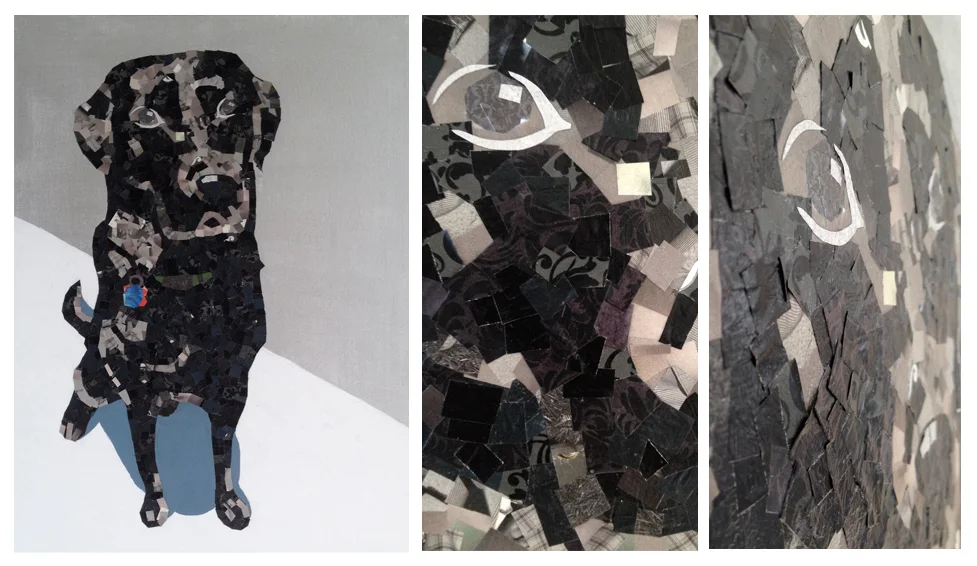 Who can say no to that face? After a few days of sorting through my garbage for shades of black and gray, I got to work on a mosaic-style collage.